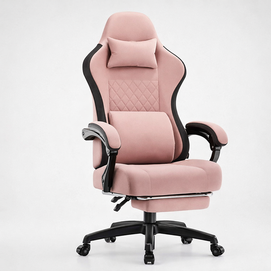 Pink Racing Style Gaming Chair with Armrests and Rolling Base
