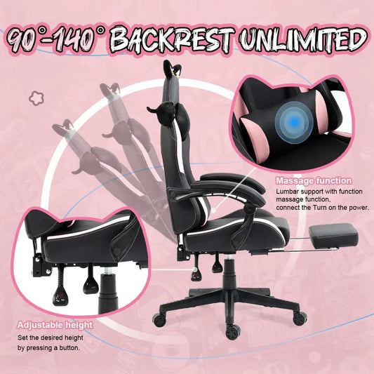 Cute Cat Ear Gaming Chair with Cushion and Armrests