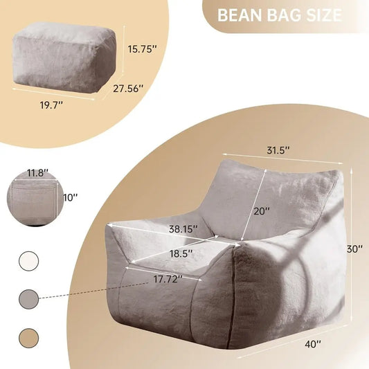 Gray Bean Bag Chair with Ottoman Set