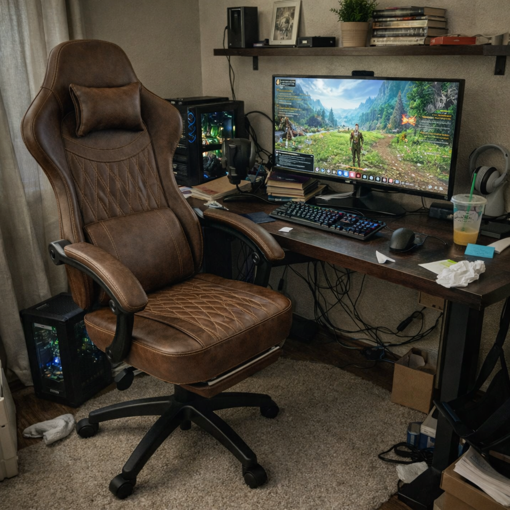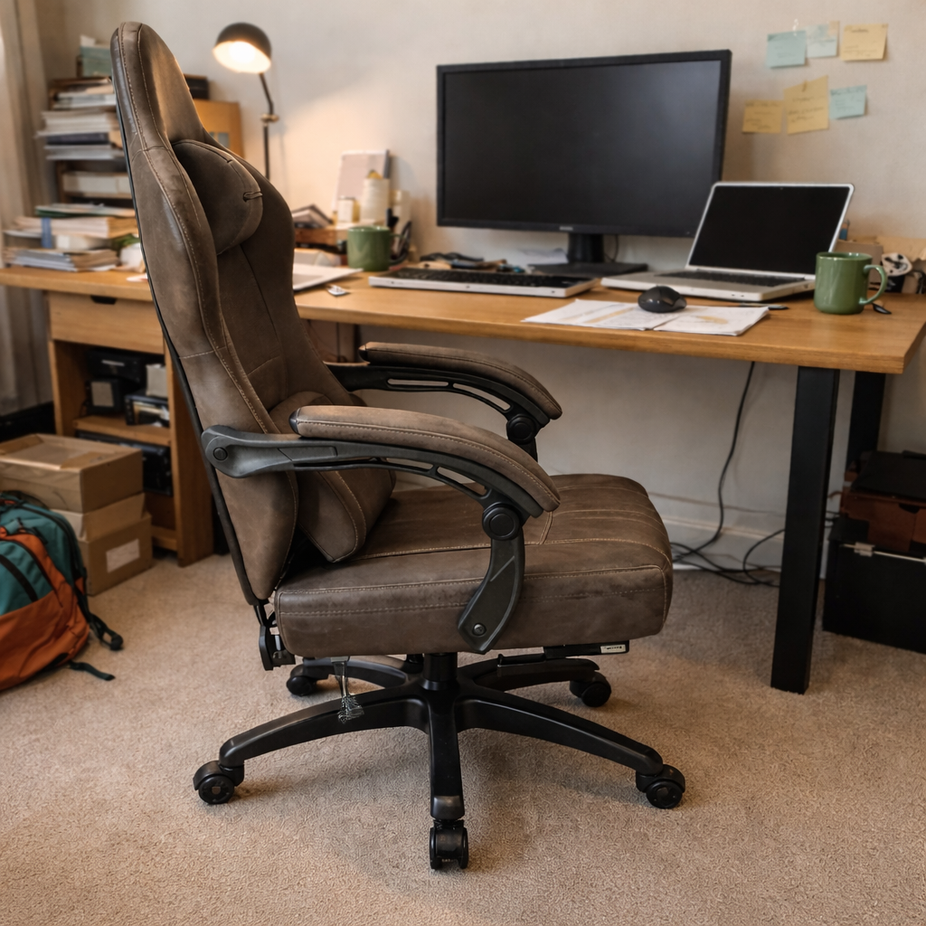 - High-Back Ergonomic Support – Helps reduce back strain during long sitting